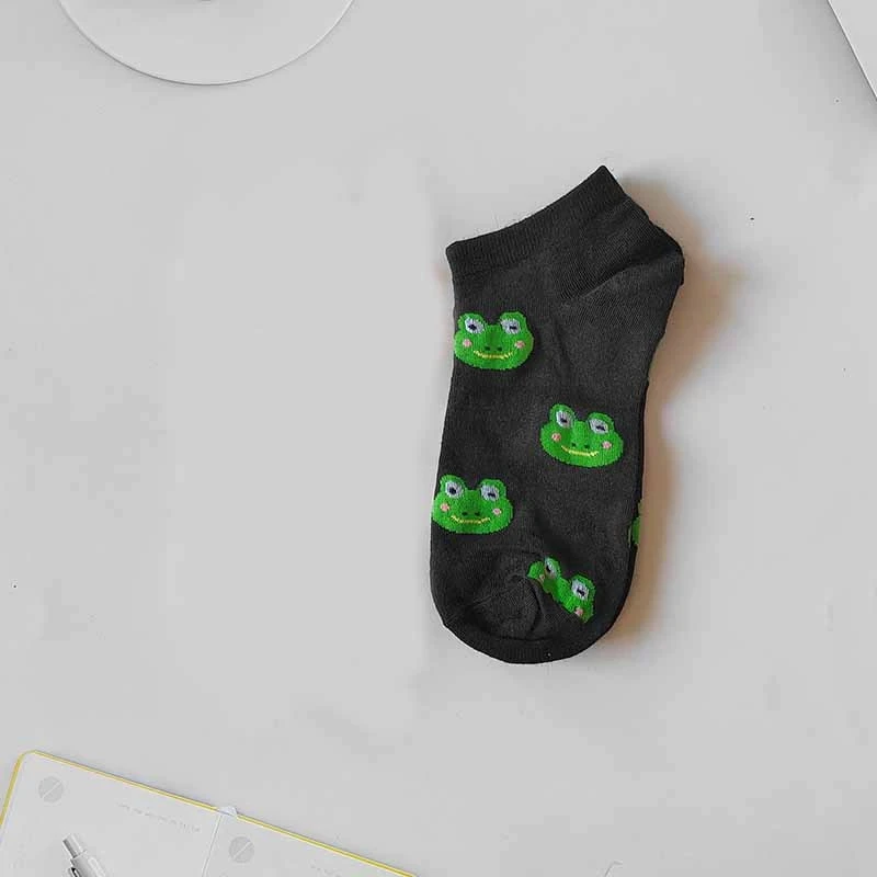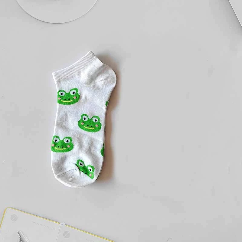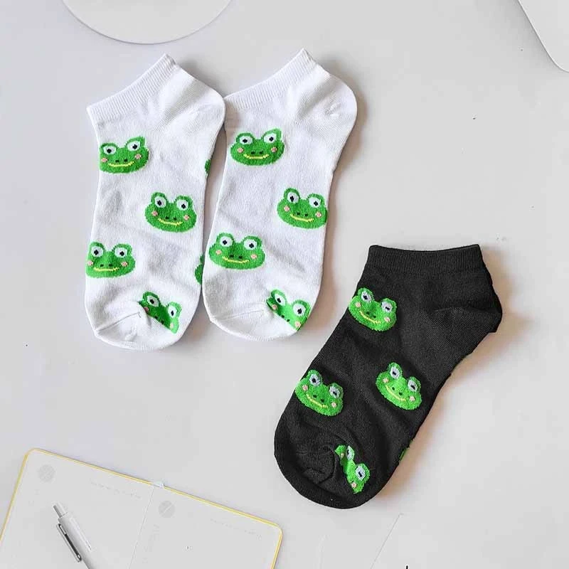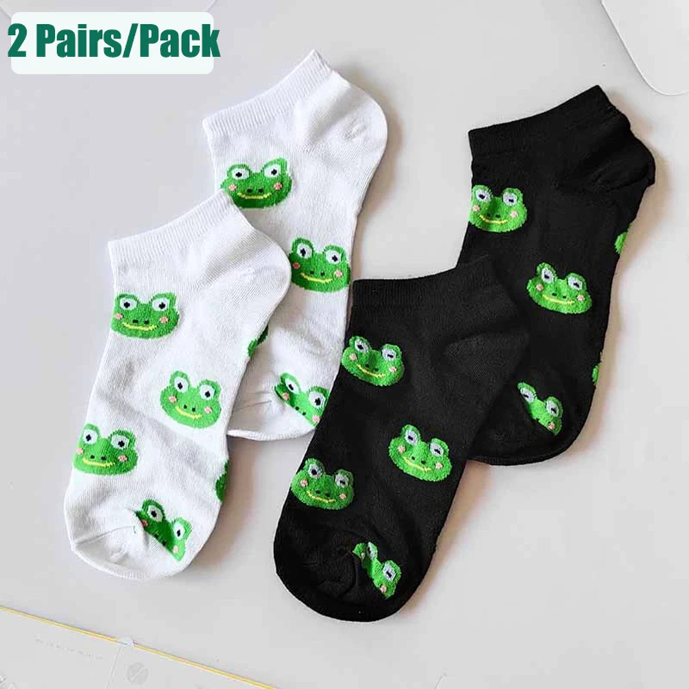 2 Pairs Women Ankle Socks Cartoon Frog Print Japanese Harajuku Fashion Street Spring Autumn Breathable Cute Girl Short Socks