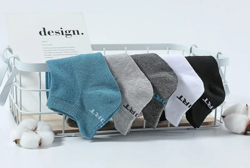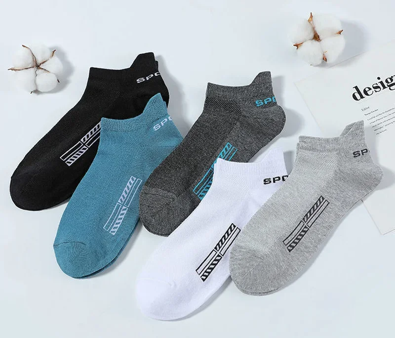5 Pairs Men Ankle Sports Socks Summer Black White Mesh Breathable Low Cut Socks No Show Cotton Soft Athletic Casual Short Socks