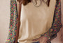 Apricot Floral Patchwork Shirred Cuff Puff Sleeve Sweater