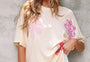 Apricot Flower Patched Exposed Stitching Trim Crew Neck Loose Tee