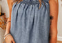 Ashleigh Blue Ruffled Shirred Neckline Sleeveless Denim Tank Top