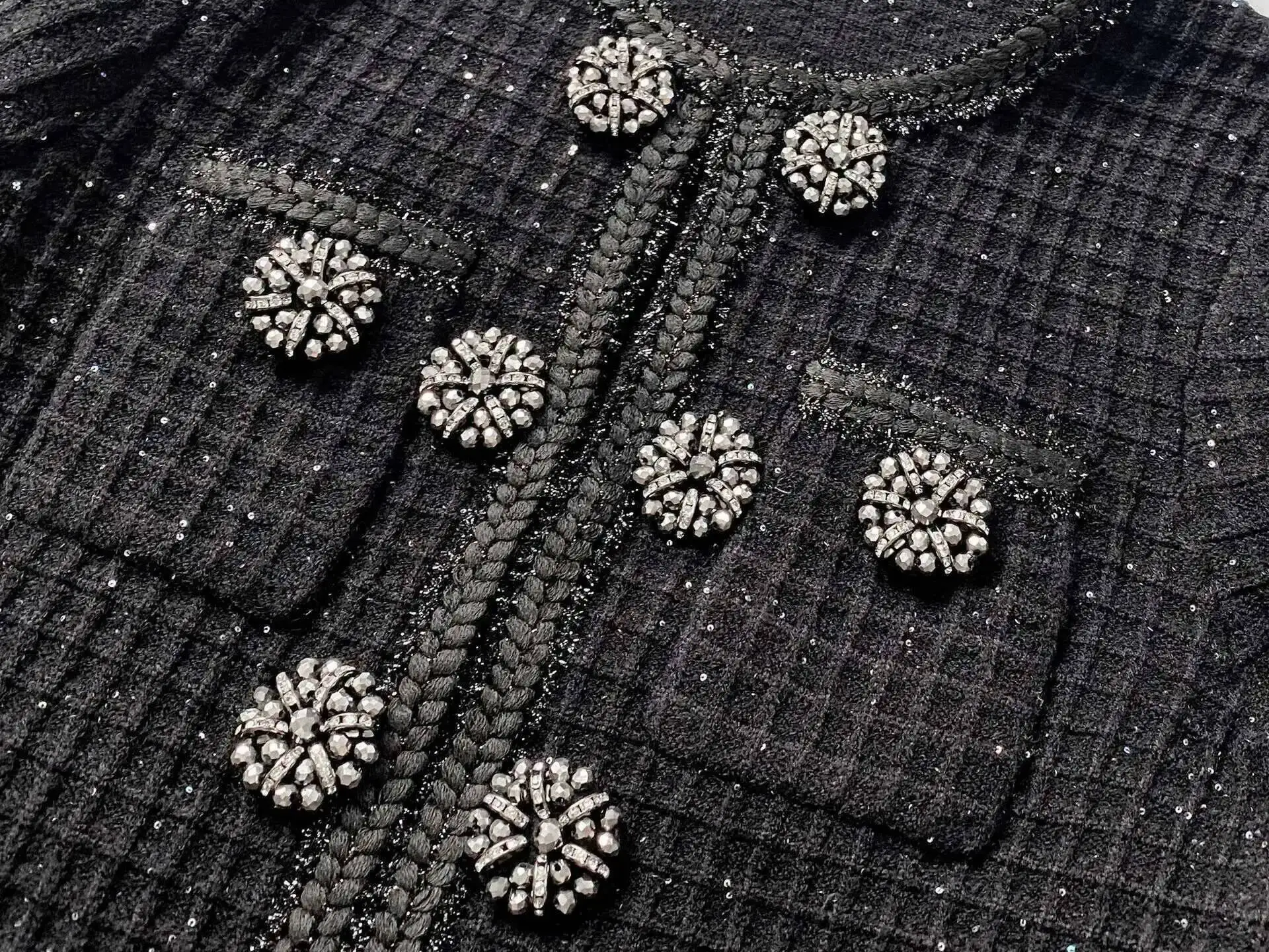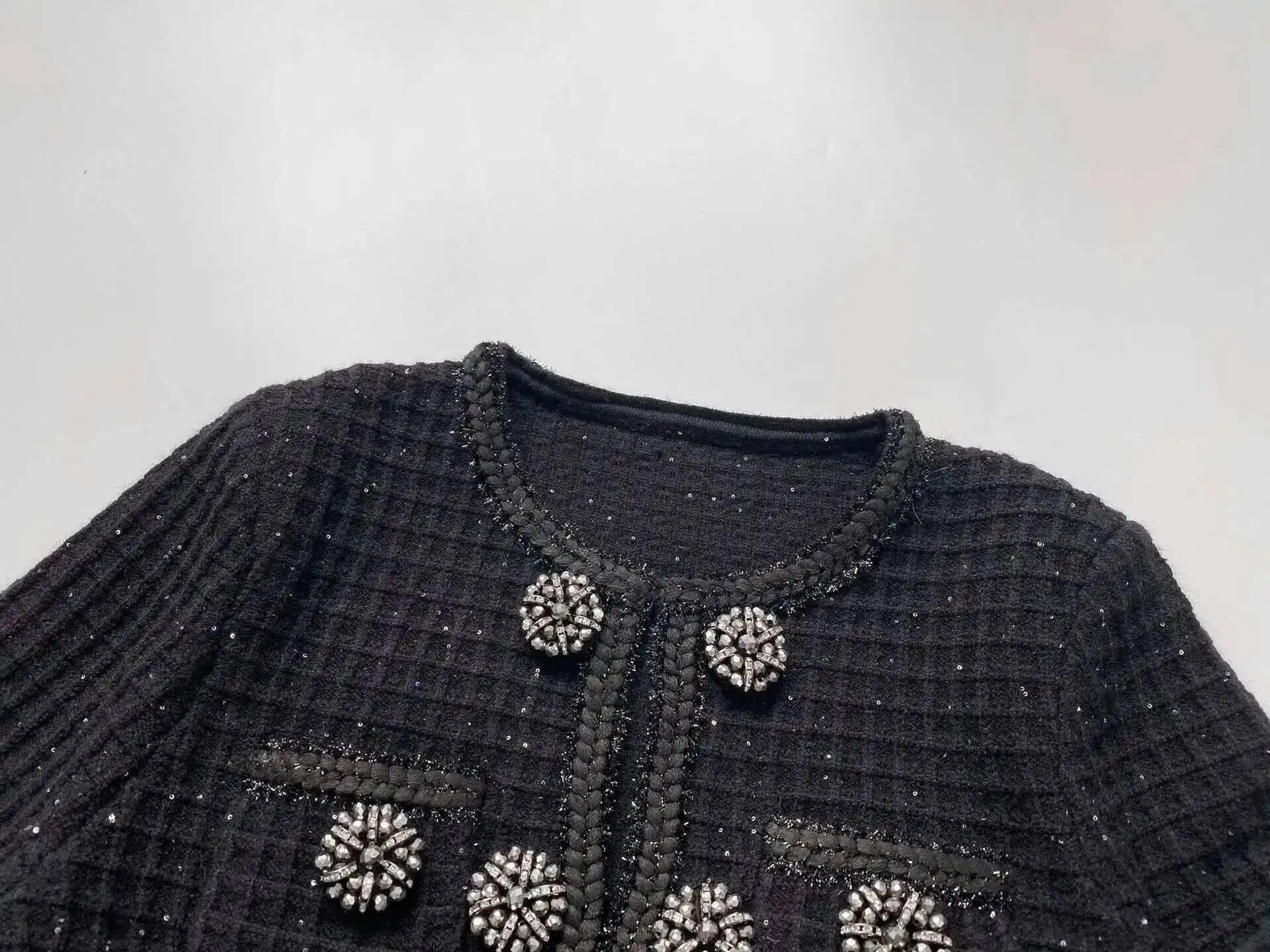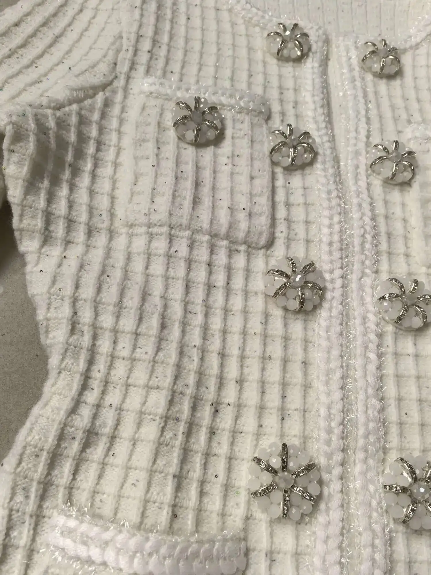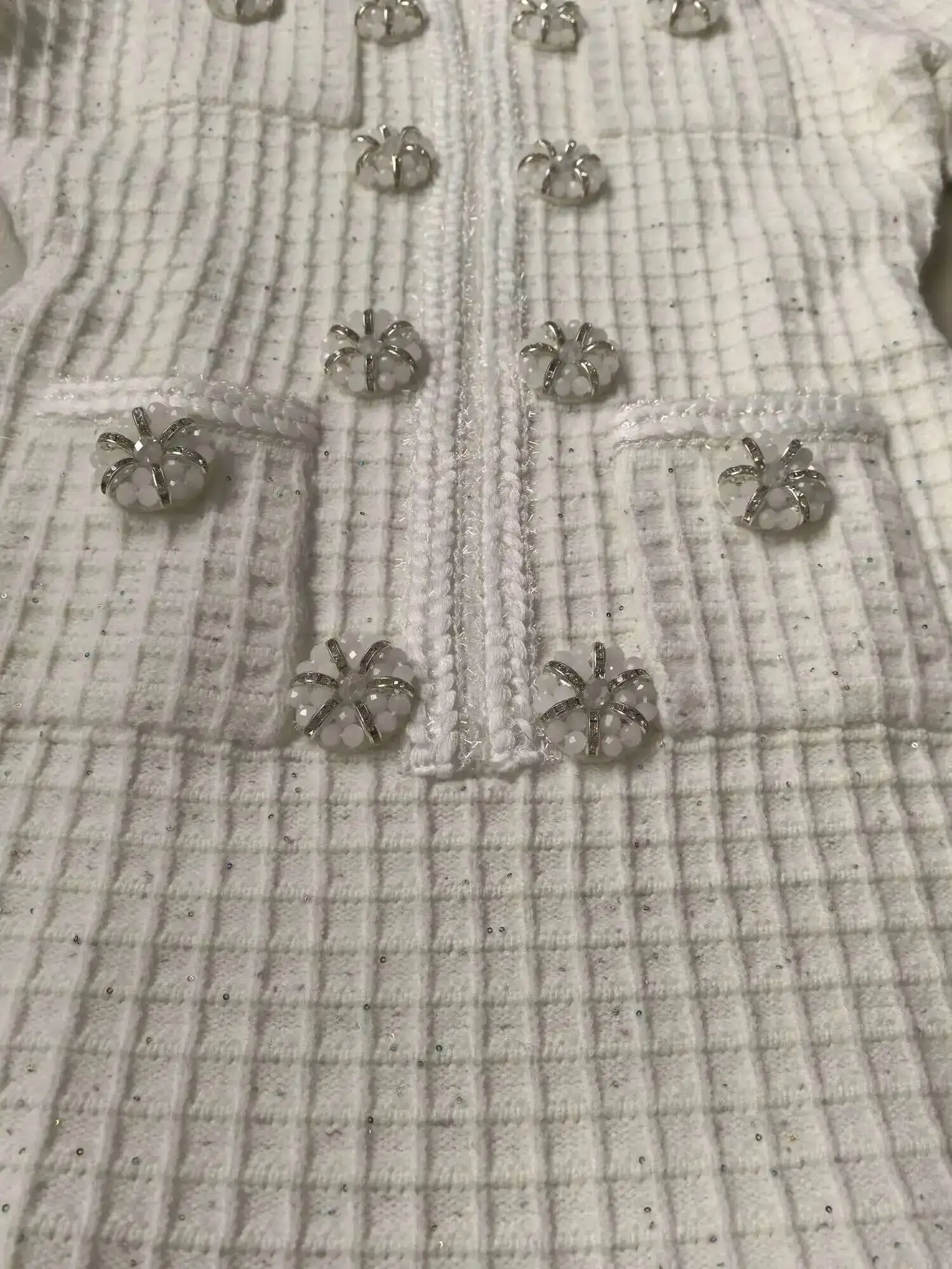⨠What is it - Step into elegance this autumn with our luxurious Bead Diamond Knitting Dress. This exquisite double-breasted long sleeve mini sweater dress blends style and comfort, perfect for any occasion.
