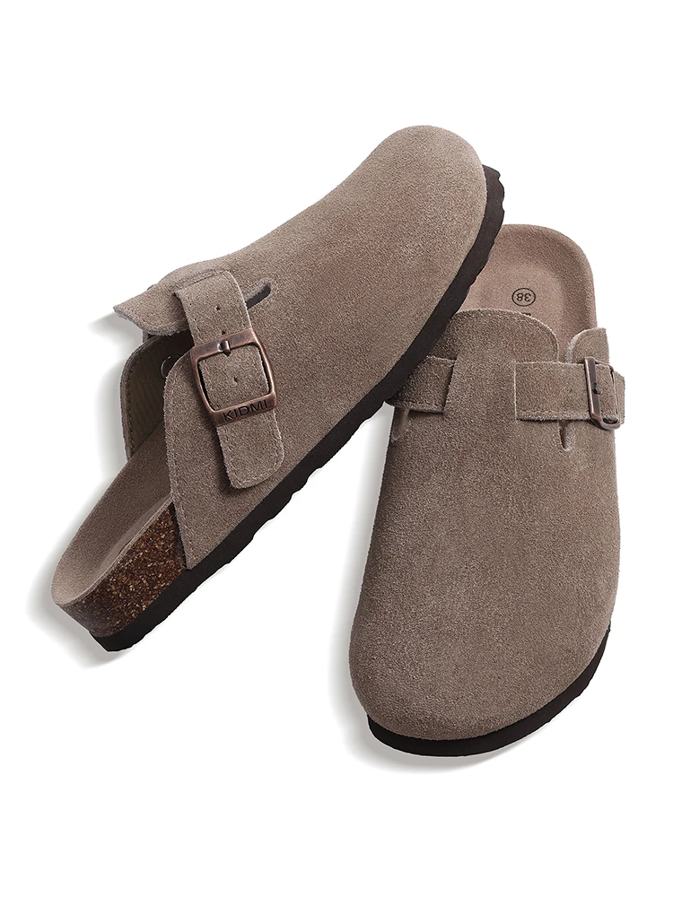 Bebealy Fashion Women Clogs Slippers New Suede Clogs Slippers Cork Footbed Beach Slippers Classic Men Mules With Arch Support
