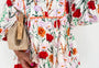 Beige Floral Print 3/4 Puff Sleeve Ricrac Trim Mini Dress