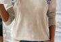 Home Tops Beige Leopard Print Detail Round Neck Long Sleeve Top