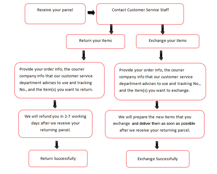 5. After we received your returning parcel info and tracking No,we will refund your money to your account within 2-7working days