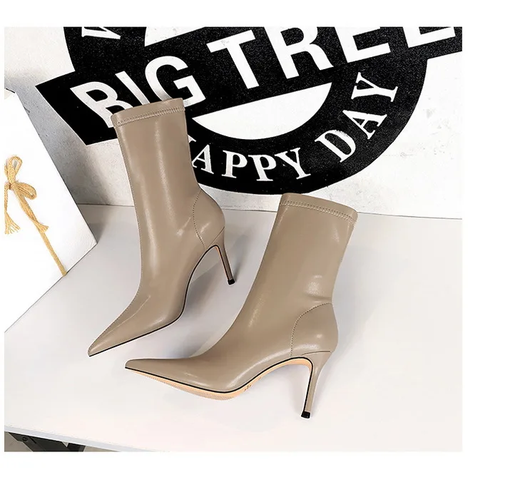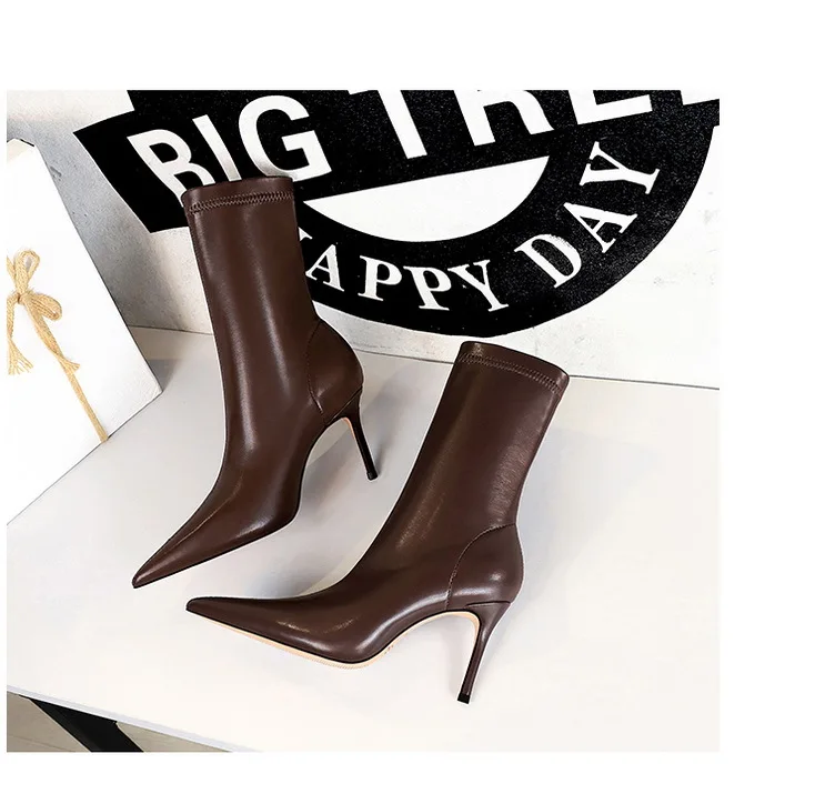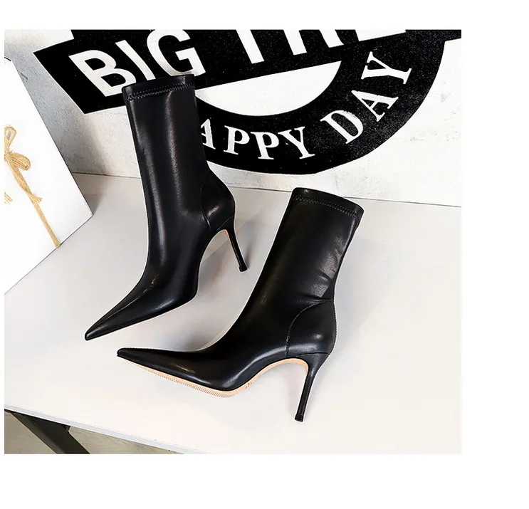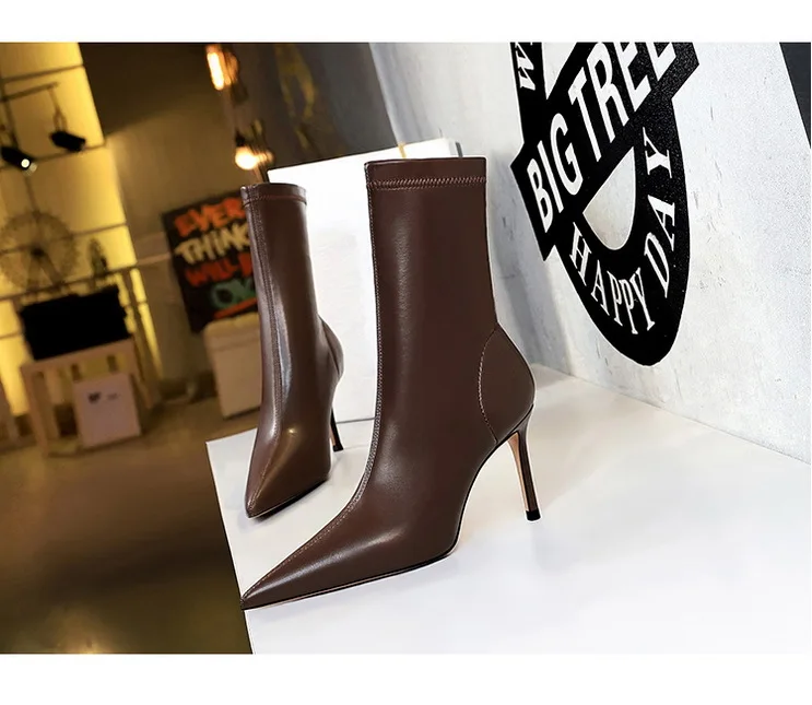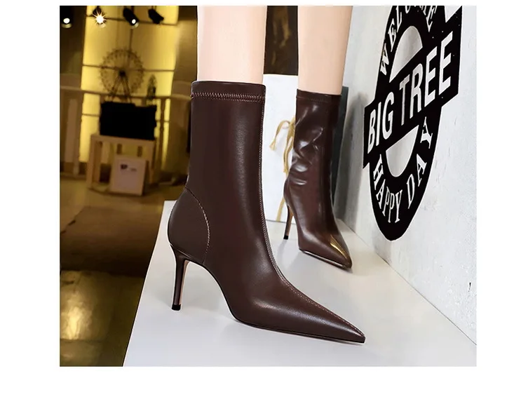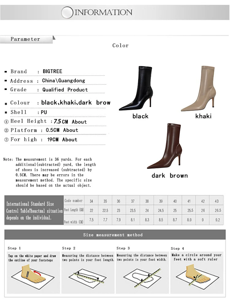 BIGTREE Shoes Pu Leather Boots Women Ankle Boots Sexy High-heel Boots Autumn Winter Shoes Short Boots Plus Size 43 Women Heels