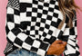 Black Checkered Print Drop Shoulder Round Neck Sweater