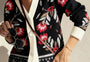 Black Floral Print Buttoned Front V Neck Knit Cardigan