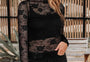 Black Sheer Floral Lace Mesh Mock Neck Long Sleeve Top