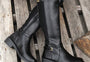 Black Side Zipper Knee High Chunky Low Heel Boots