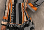 Black Striped Polka Dot Print Ruffled Hem V Neck Mini Dress
