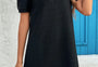 Black Textured Zipped Collar Shift Polo T Shirt Dress