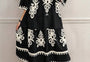 Black Western Geometric Print 3/4 Sleeve Loose Midi Dress