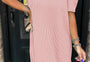 Blossom Corded Knit Crew Neck Puff Sleeve Shift Mini Dress