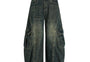 Blue Workwear Tapered Jeans for Men and Women with Multiple Pockets Loose Washed Banana Wide-Leg Long Pants