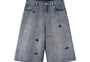 Cartoon Dog Embroidery Washed Five-Quarter Denim Shorts for Men and Women