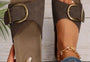 Coffee Buckle Decor Faux Suede Thick Sole Slippers