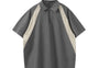 Color blocking splicing half zipper lapel polo shirt short sleeved