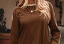 Home Dresses Dark Brown Varsity Striped Accent Contrast Crew Neck Long Sleeve T Shirt