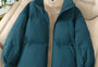 EVNISI Women Solid Loose Zipper Coat Long Sleeve Pocket Casual Down Coat Winter Thermal Thickened Fall Cotton-padded Jacket 2023