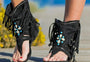 Home Sandals Fashion new style Retro Women Fringe Flower Wedges Shoes 2024 Solid Flock Beach Casual Sandals Women Summer Flip Flop Sandals