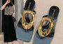 Flats 2024 Women Flip Flops New Summer Casual Slides Beach Ladies Slippers Outside Metal Decoration Female Shoes for Slippers