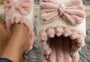 Fushia Bow Decor Color Block Ribbed Plush Slippers