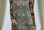 - This jean dress features a chic leopard print silhouette.