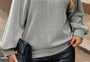 Gray Ribbed Knit Round Neck Long Lantern Sleeve Top