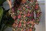 Green Floral Print Split Neck Bubble Sleeve Shift Mini Dress