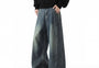 High Street Wide Leg Jeans Men Autumn Winter Loose Straight Fit Drapey Floor-Length Pants Men Washed Vintage