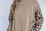 Khaki Leopard High Neck Side Slit Oversized Sweater