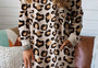 Home Dresses Khaki Leopard Long Sleeve Shift T Shirt Dress with Pockets