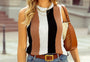 Khaki Stripe Color Block Sleeveless Knitted Sweater Vest
