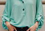 Light Blue Oversized Twist Ribbed Collared Henley Top with Roll up Sleeve
