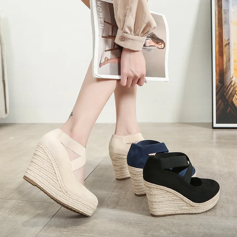 LIHUAMAO Wedges shoes for women high heel pumps platform high heel party slingback slip on fashion lady comfortable shoes