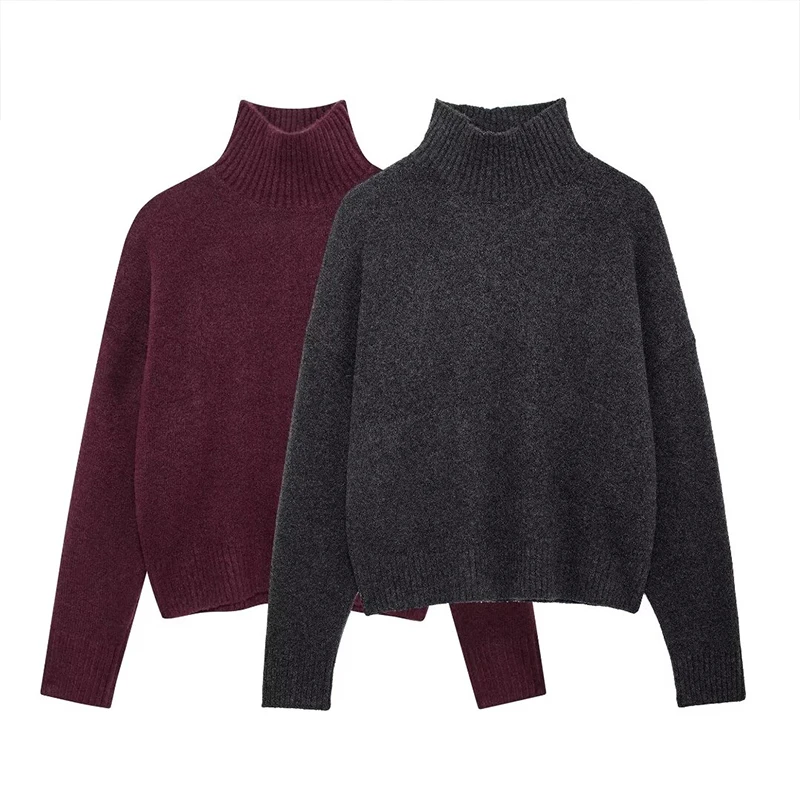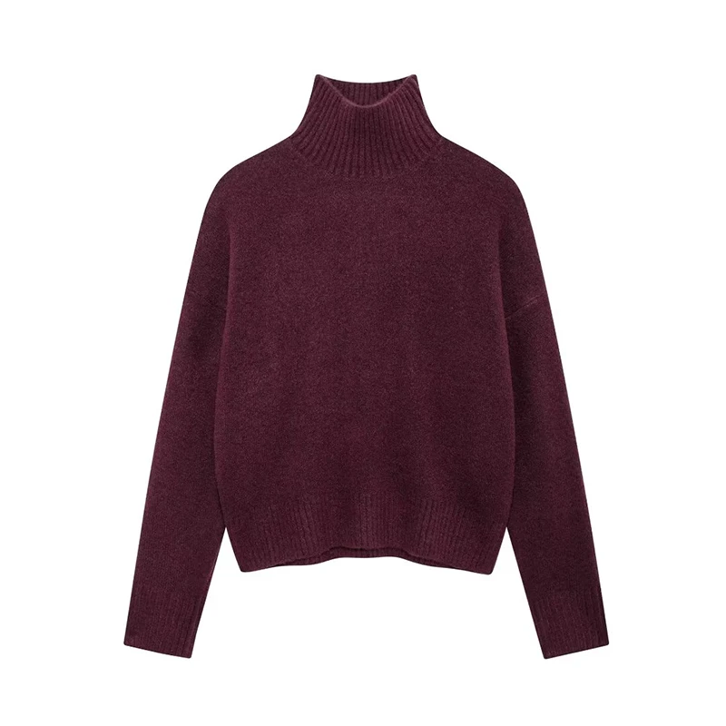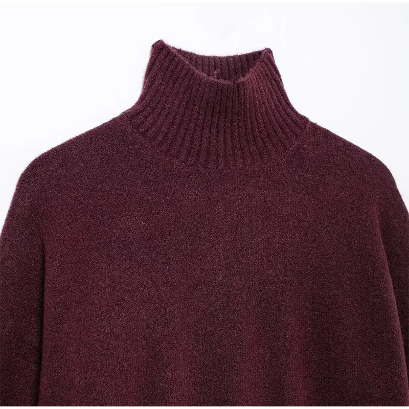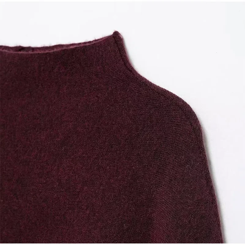 Loose Burgundy Cloak Cape Sweater Women Knit Turtleneck Loose Raglan Sleeve Pullovers Female 2024 Autumn Lady Asymmetric Outwear