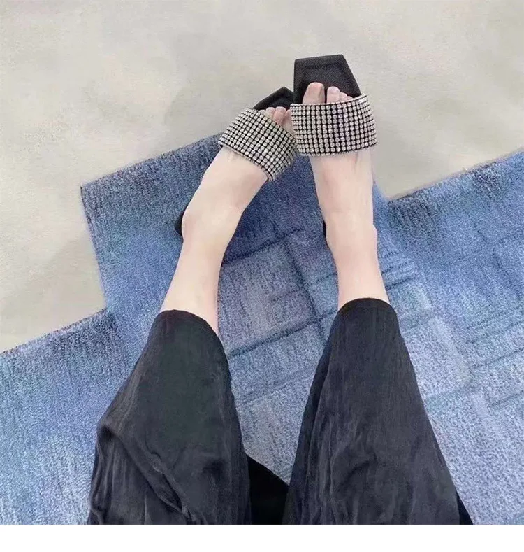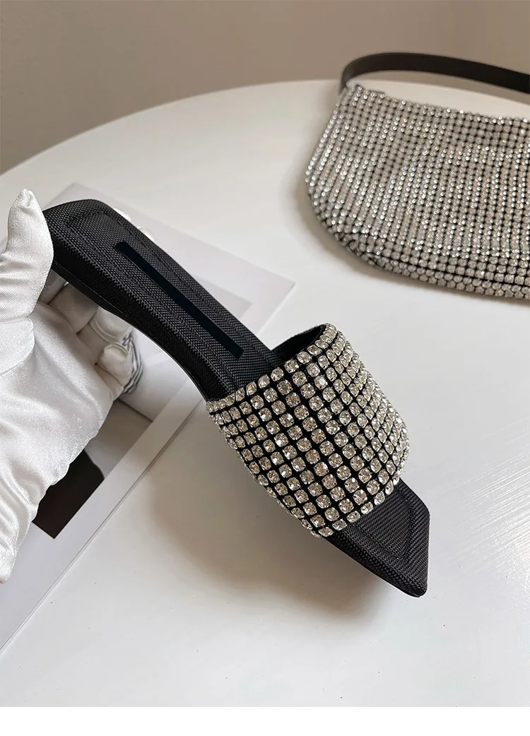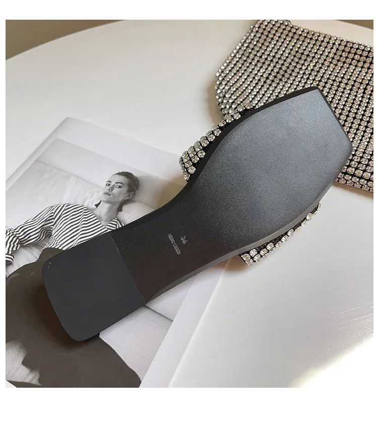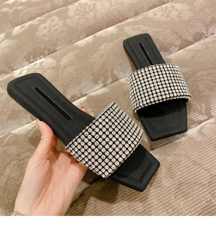 luxury designer shiny crystal slippers women flat heel outdoor slides summer shoes bling sandalias open toe glitter flip flops