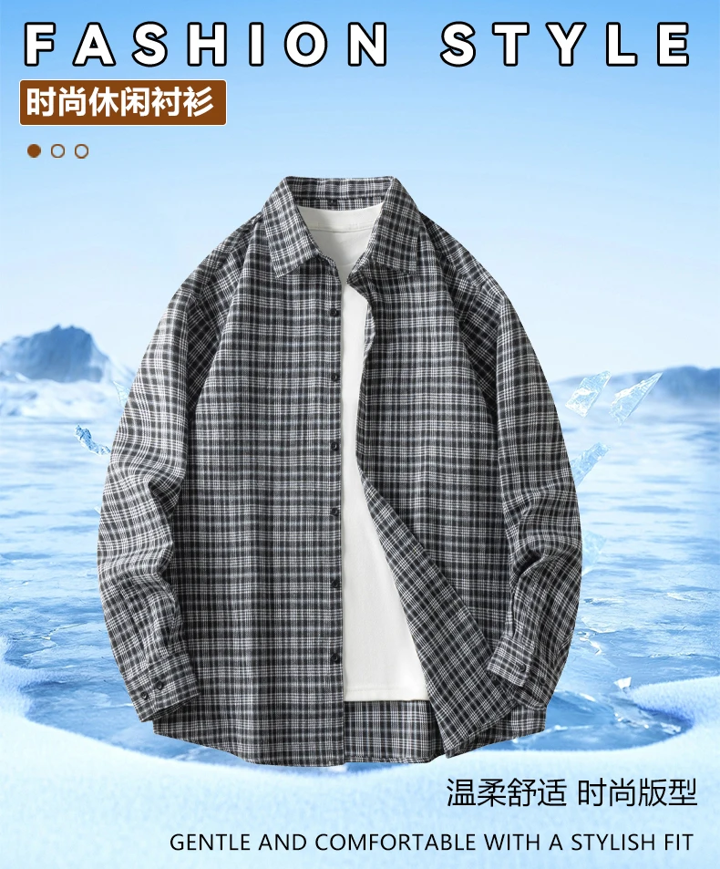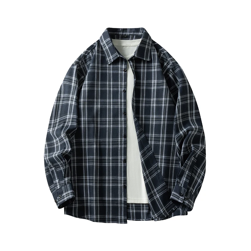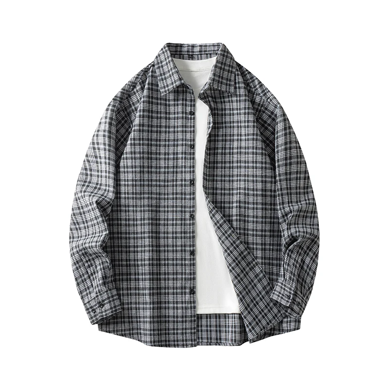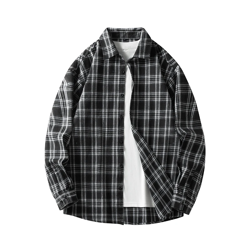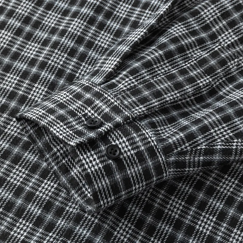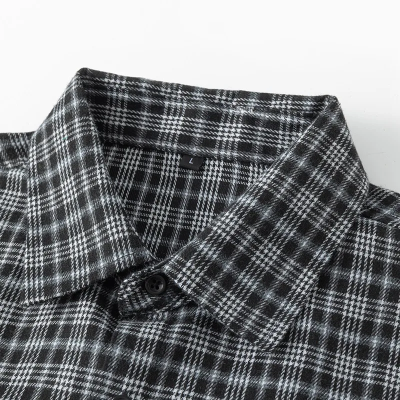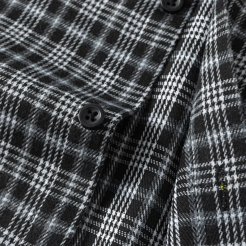 Men Shirt Plaid Flannel Retro Long Sleeve Oversized Loose Cotton Casual Male Youth Design Soft Fall Black Formal Dress Shirt
