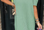 Mint Green Corded Knit Crew Neck Puff Sleeve Shift Mini Dress