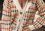 Multicolour Dotty Pattern Knit Button Front V Neck Sweater Cardigan