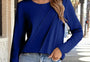 Navy Blue Asymmetric Seam Detail Solid Color Long Sleeve Top