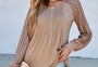 Parchment Lace Patchwork Long Raglan Sleeve Pleated Top