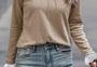 Parchment Seam Detail Lace Contrast Cuffs Raglan Sleeve Top
