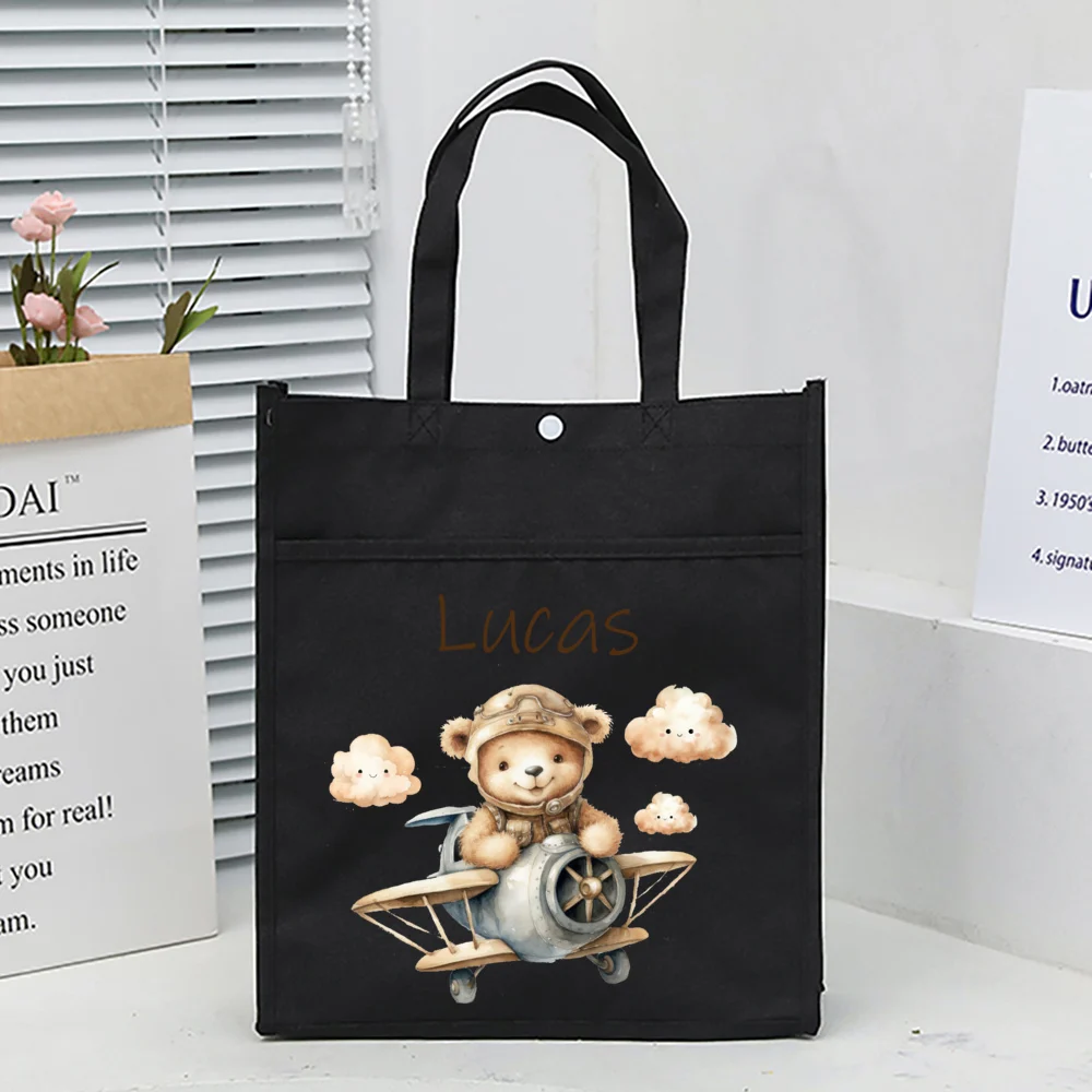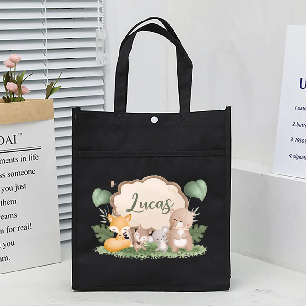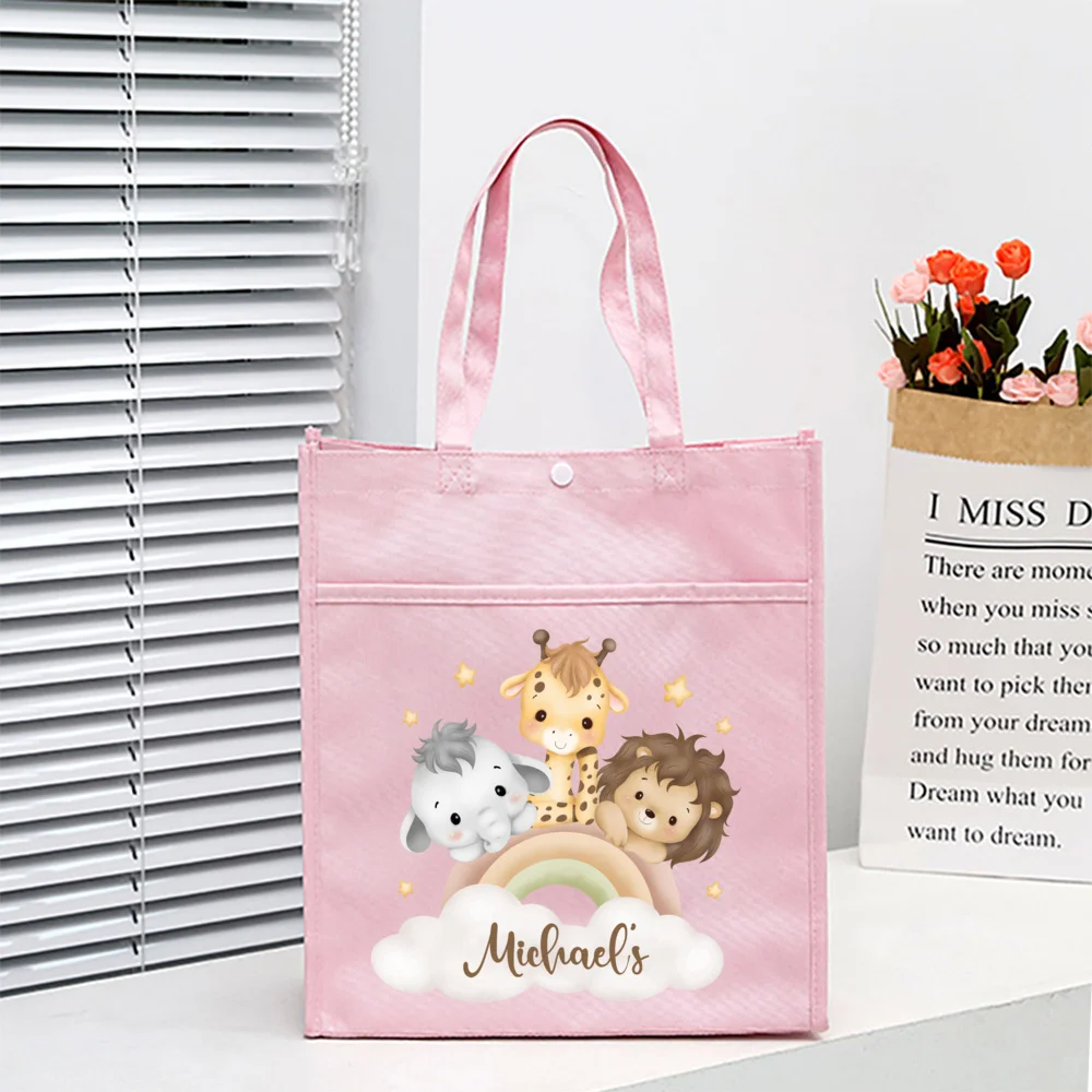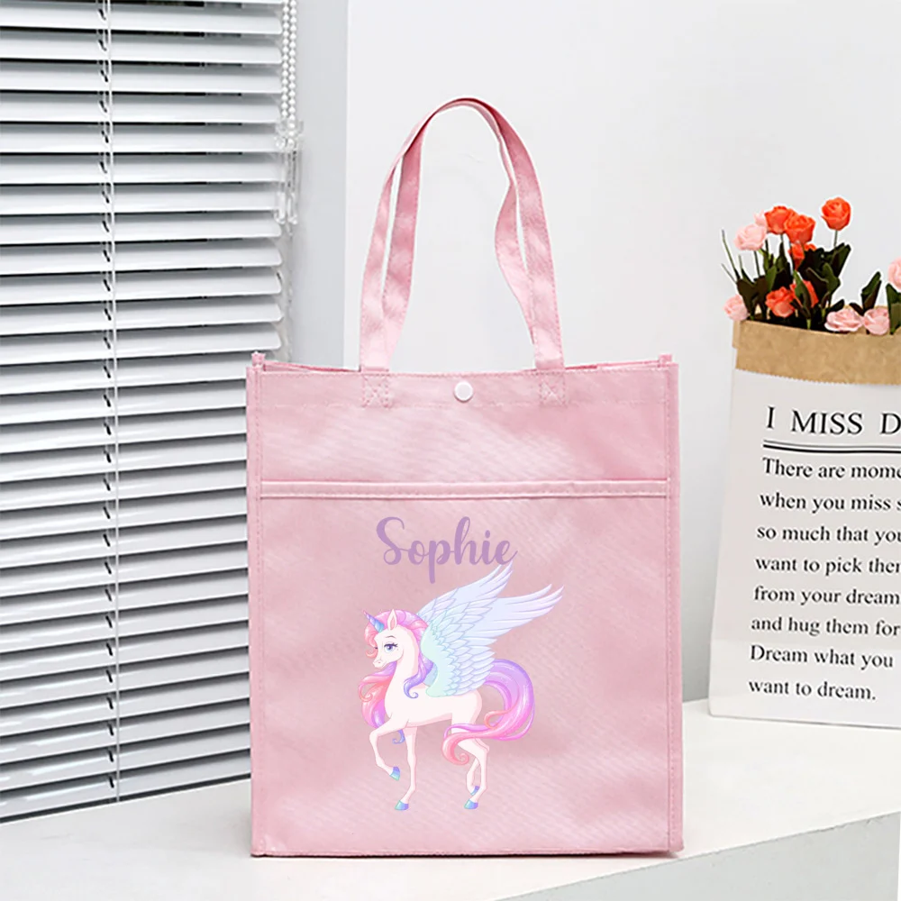 Personalized Kids Library Tote Bags Homeschool Cute Custom Name Reading Books Bag Children School Bag Birthday Gifts for Kids