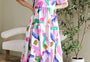 Purple Abstract Print Puff Sleeve Smocked Back Midi Dress