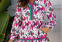 Purple Floral Print Contrast Striped Detail Long Sleeve Mini Dress