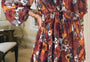 Red Floral Print Wrap V Neck Puff Sleeve Flowy Mini Dress