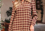 Red Plaid Print Ruffled Long Sleeve Patchwork Hem Mini Shirt Dress